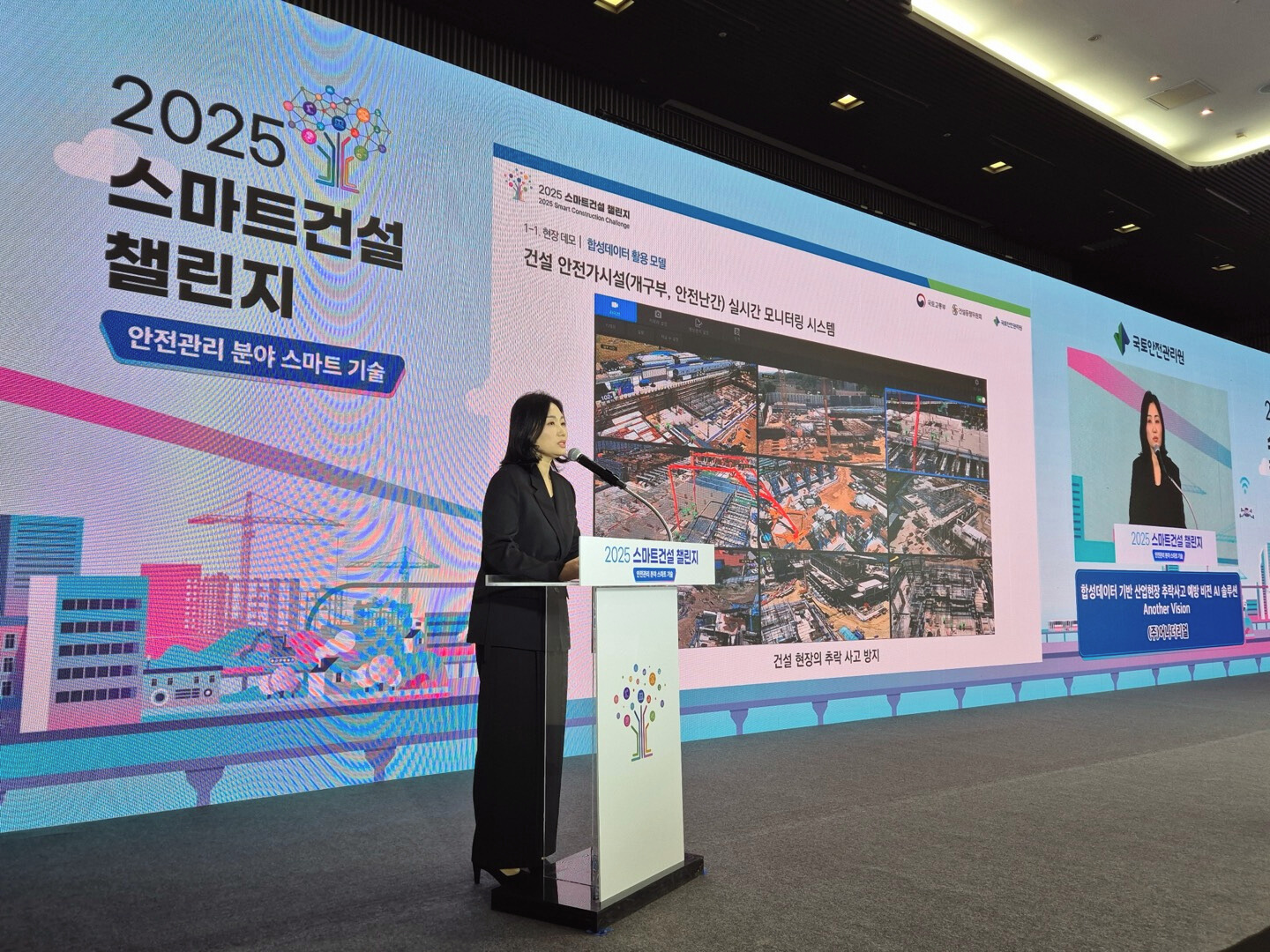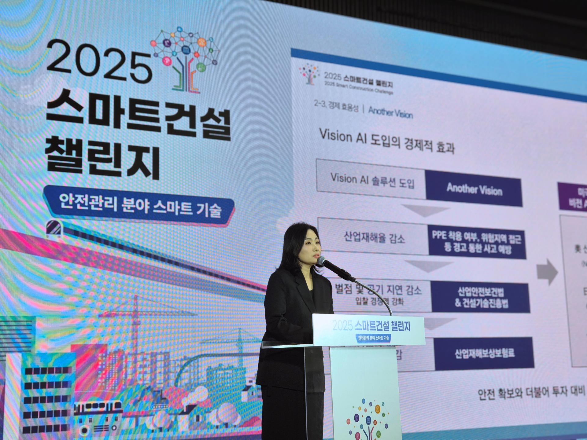 김 대표는 건설 현장의 부족한 학습 데이터를 생성하고 산업 정보 유출 문제를 해결하는 어나더데이터의 활용과 함께 어나더비전의 ‘안전고리 모델’과 안전사고 위험을 획기적으로 줄인 실증 사례를 소개했다. 건설 분야 외에도 다양한 산업군에서 쉽게 적용할 수 있는 확장 및 범용성을 강조했다. 특히 K-스마트건설 기술로 글로벌 확산 로드맵을 함께 선보여 어나더리얼의 기술 파급력에 대한 청중들의 공감을 이끌기도 했다.